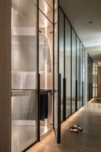 The resulting design of the apartment is rich in layers and detailed elements that give the interior of the new building a unique character. Vertical profiling is reflected in wooden elements, colorful surfaces, and metal details, visually creating a cohesive atmosphere throughout the rooms.