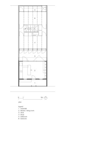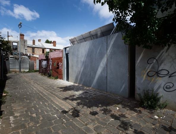 In the second largest Australian city, architect Sean Gosell has completed an unconventional extension in the backyard of a historic terrace house. The resulting shape of the gray low block derives from the complicated surrounding conditions. The client wanted to build a new house. However, there was a building on the site that, according to the architect, was "for incomprehensible reasons under the wings of heritage protection." The valuable wooden facade thus had to remain preserved, allowing a modern family home to be created on an area of 77m² behind it. Godsell worked with various methods of daylighting and the insertion of individual elements in the interior. Similar to his previous project temporary pavilion in a Melbourne park, he used operable elements on the flat roof, which can ventilate the structure perfectly or, on the contrary, completely close it off. The newly added section occupies almost the entire area of the plot. In the densely built-up area, there was room for a small courtyard separating the historic gable roof from the flat extension. Perfectly hidden, the new part is only three meters high and resembles a fence to passersby.