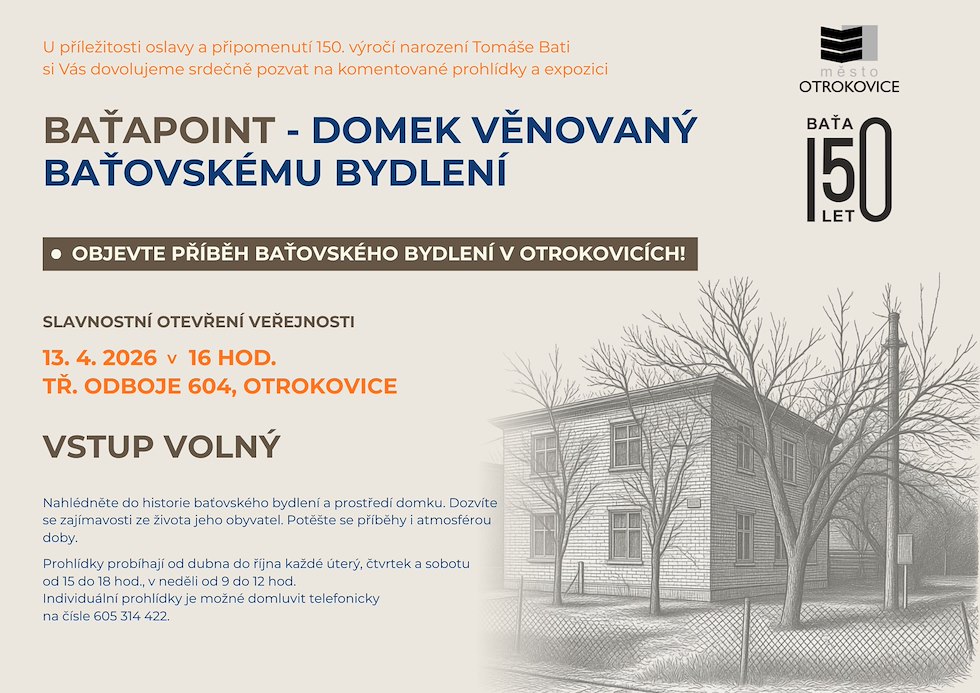 Otrokovice – Otrokovice na Zlínsku zpřístupní baťovský domek na křižovatce Mánesovy ulice a třídy Odboje. V budoucnu chystá město jeho přestavbu na coworkingové pracoviště, ještě předtím ale nabídne veřejnosti příležitost nahlédnout do jeho původní dispozice a atmosféry, sdělila ČTK mluvčí radnice Lenka Vaculová. Domek se veřejnosti poprvé otevře v pondělí 13. dubna. Otrokovice si stejně jako sousední Zlín připomínají 150 let od narození zakladatele obuvnického impéria Tomáše Bati.
