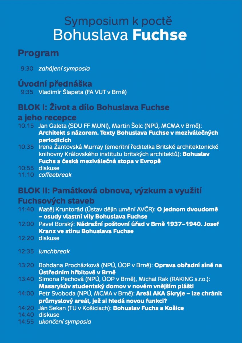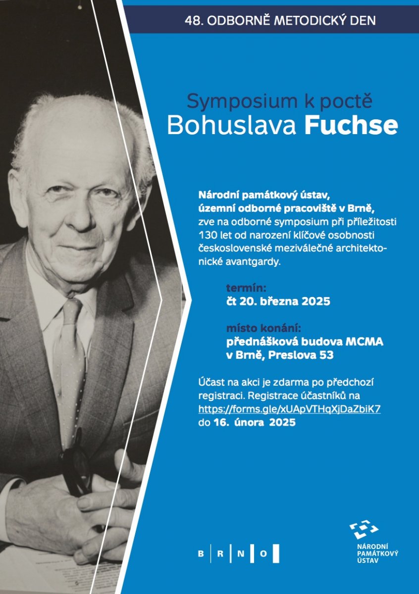 Národní památkový ústav, územní odborné pracoviště v Brně, zve na odborné symposium při příležitosti 130 let od narození klíčové osobnosti československé meziválečné architektonické avantgardy. Termín: čtvrtek 20. března 2025 od 9:30 hodin Místo konání: přednášková budova MCMA v Brně, Preslova 53 Místa v sále jsou aktuálně zaplněna. Je ale možná účast online prostřednictvím platformy ZOOM. Meeting ID: 895 9330 7358 Passcode: 961491